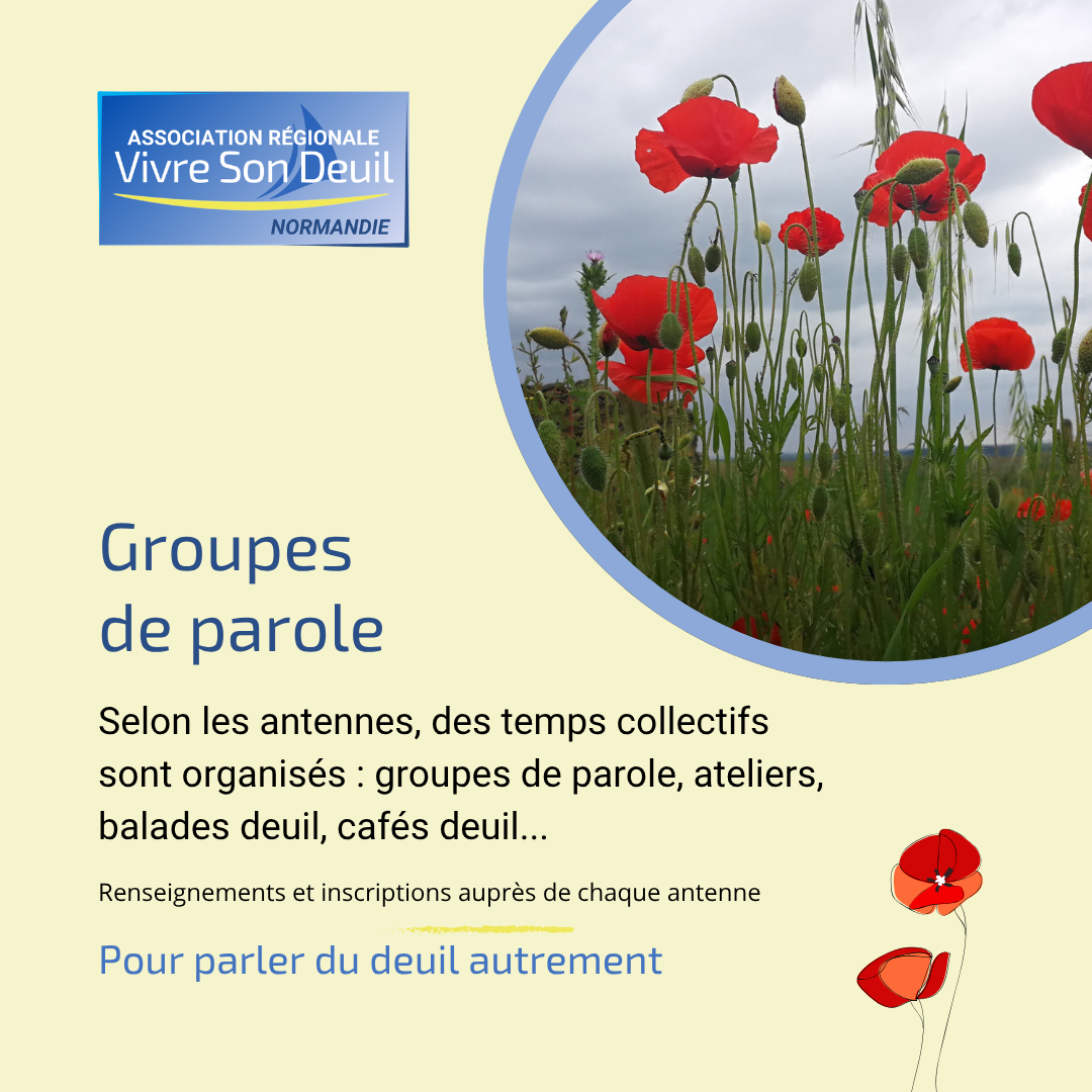 Il est parfois rassurant d'être entouré d'autres personnes endeuillées pour rencontrer les bénévoles de Vivre Son Deuil Normandie. Des rencontres sont organisées régulièrement, selon les antennes, pour parler du deuil... N'hésitez pas à contacter l'antenne la plus proche pour découvrir ces temps de partage.